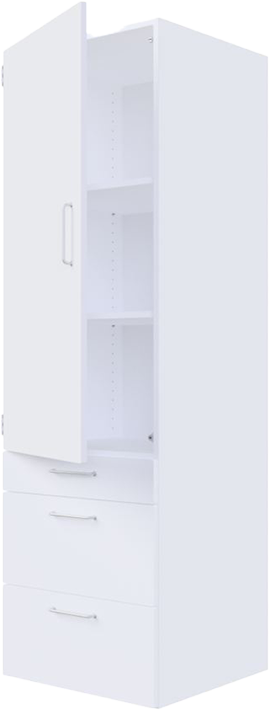 Flot og solidt højskab fra ST med 1 låge øverst, mellembund og 1+2 skuffer. inkl. 2-3 flytbare hylder afhængig af ønsket højde. Højskabet er produceret på vores egen fabrik i Tarm.