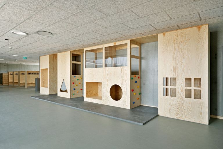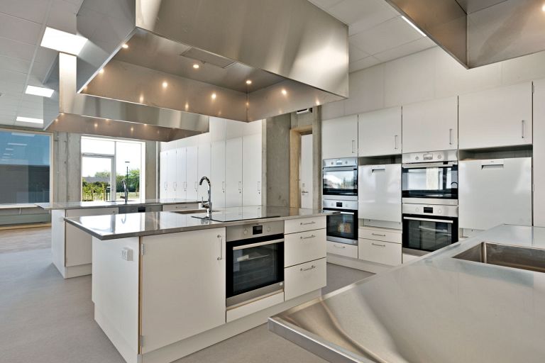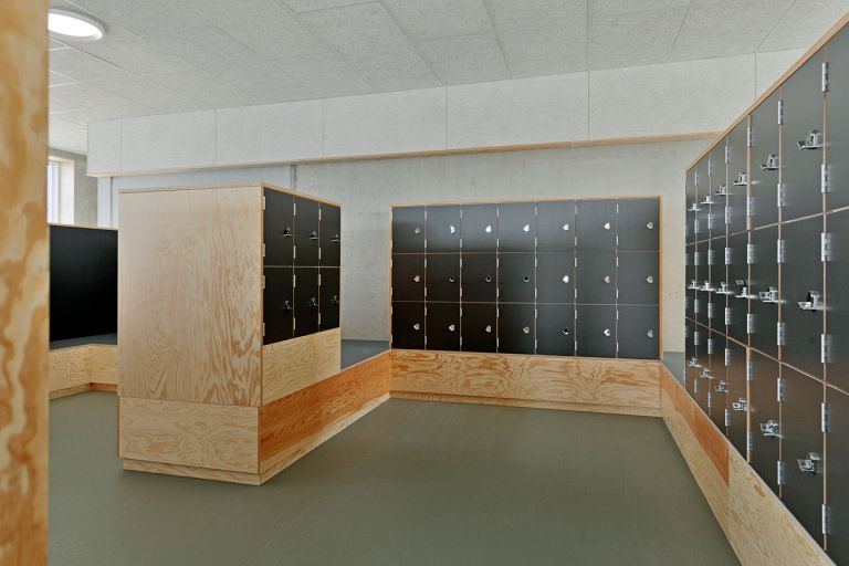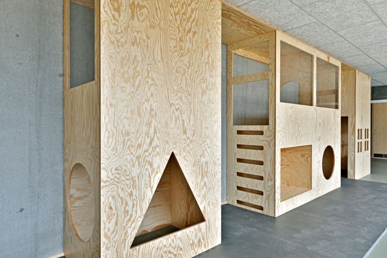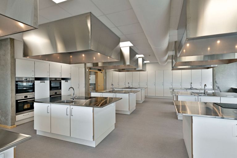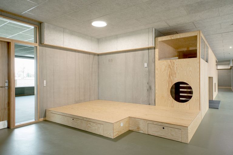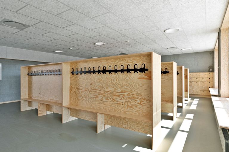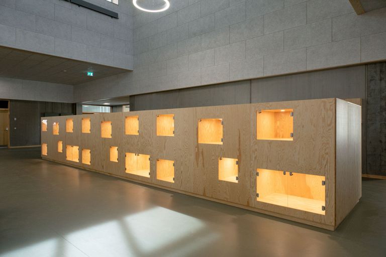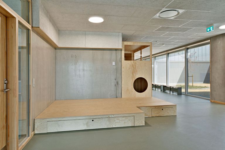 Inventarløsninger leveret til Jetsmark skole bl.a. podier, faglokaler og flotte løsninger i krydsfinér.