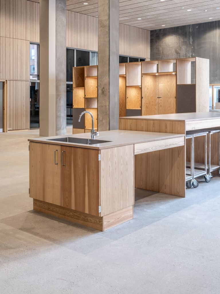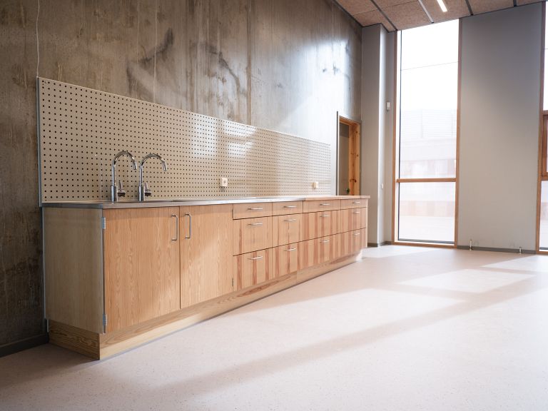 Faglokalerne indbyder til læring, trivsel og høj kvalitet. Inventaret til faglokalerne fra ST er installeret i de smukt indrettede, store, lyse rum med højt til loftet. Der er specialindrettet inventar, indbyggede siddenicher, udstillingsmoduler til elevernes kreationer, køkken til fællesarealer og meget mere. Også er der indtænkt akustik samt brandhæmmende materialer, hvilket gør byggeriet af Sluseholmen Skole til et fremragende eksempel på fremtidens skole.